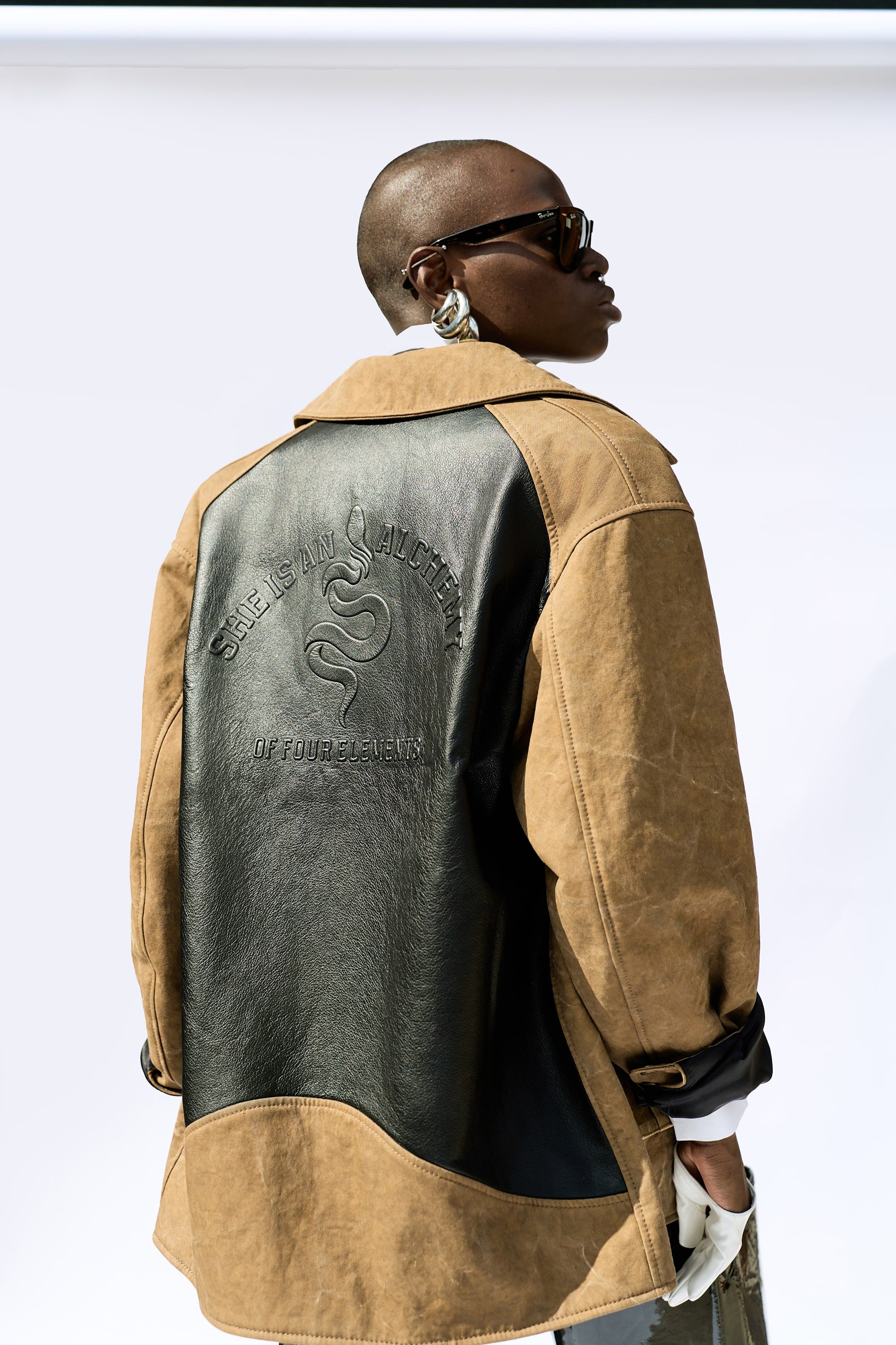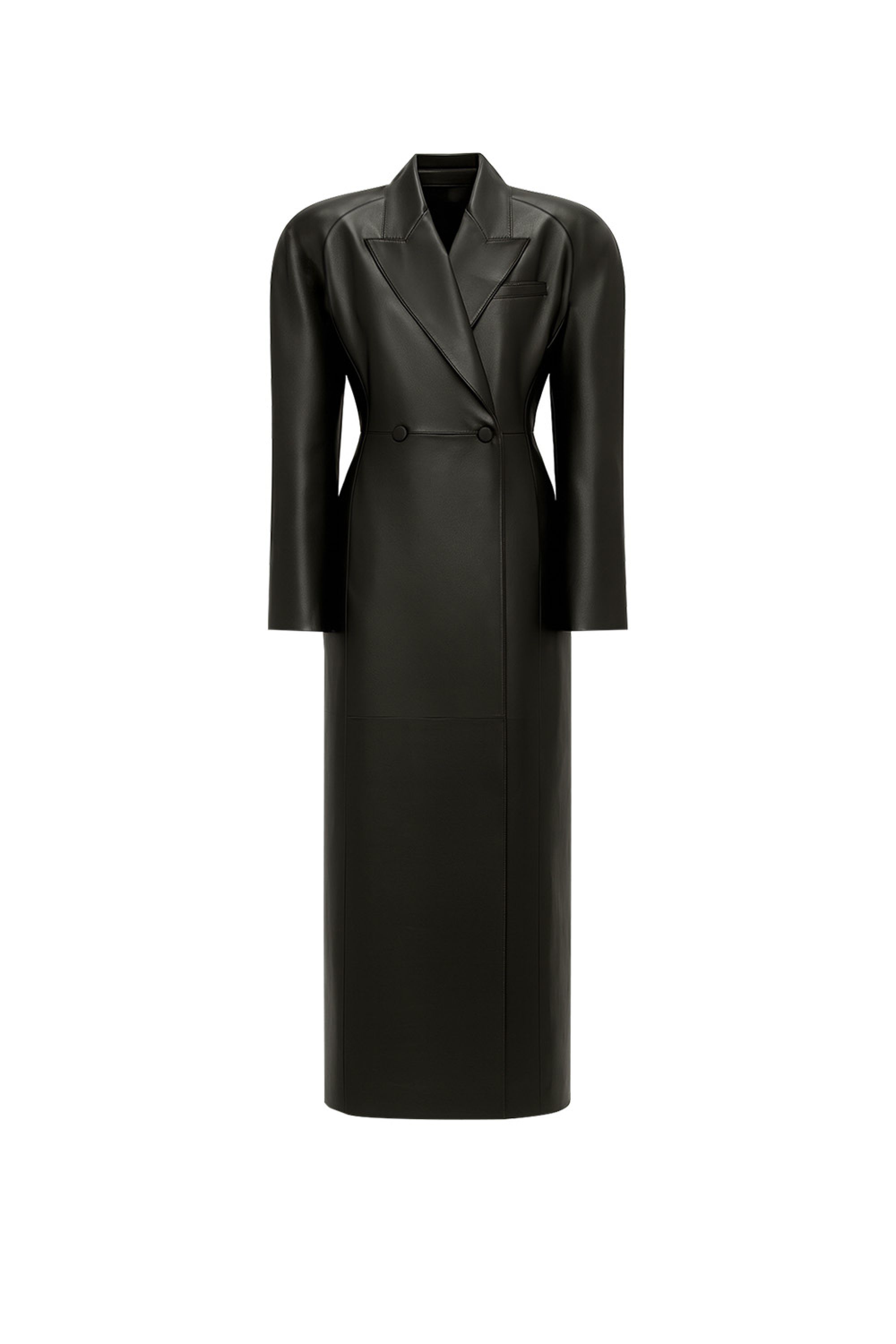 Кожаное пальто с акцентными плечами
